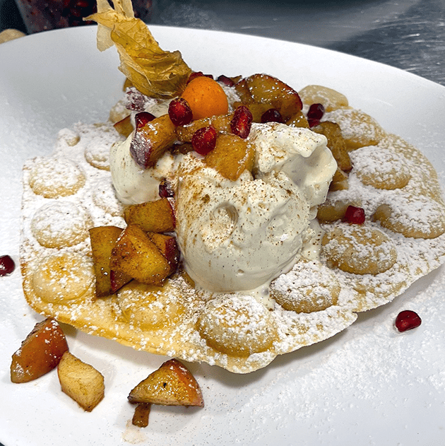 - zwei Joghurts mit frischen Früchten & hausgemachtem Granola