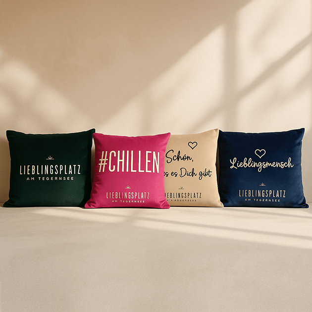 - Wähle 3 von 4 verschiedenen Samtkissen (kombinierbar oder auch mehrfach wählbar)